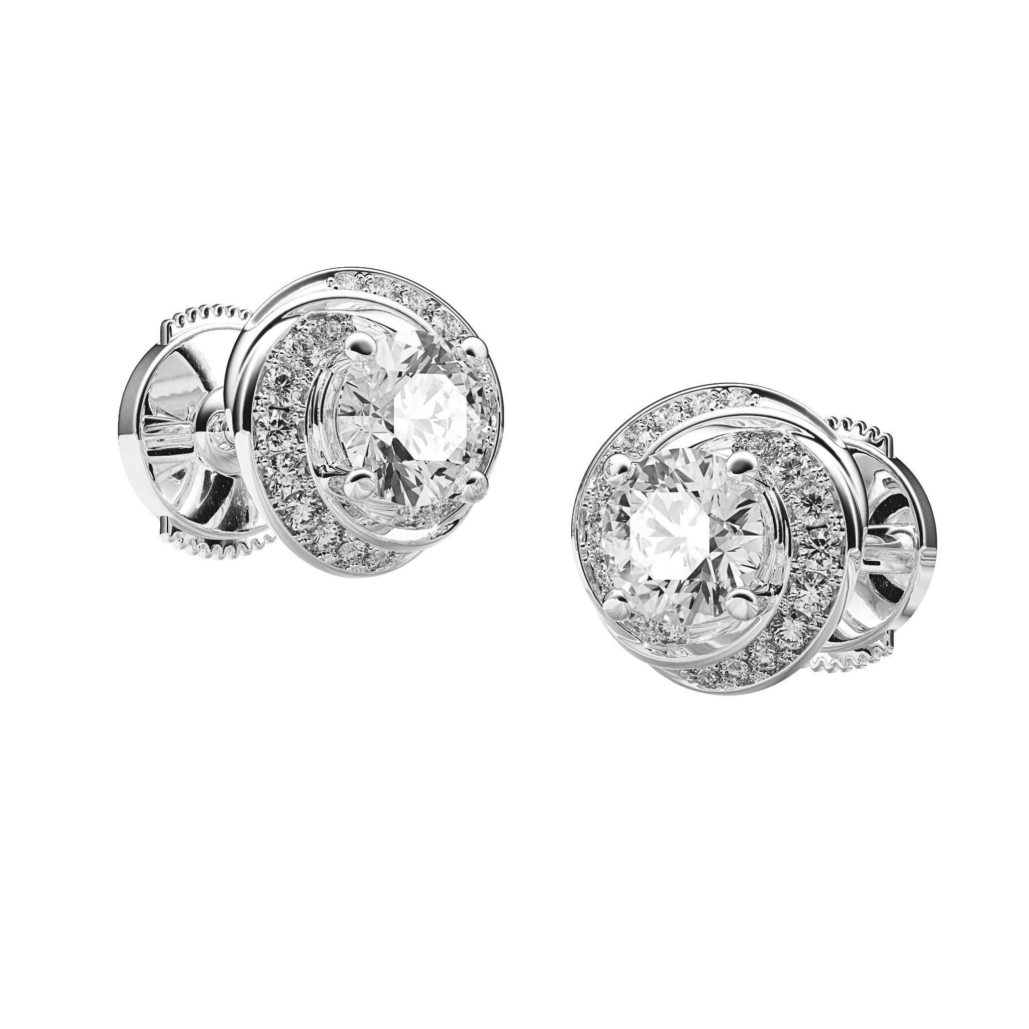 Vàng 18K | - 2 viên Kim cương tròn E/VVS1 5.4 ly (Kiểm định PNJ+GIA) - 36 viên Kim cương tấm 1.0 và 1.2 ly |