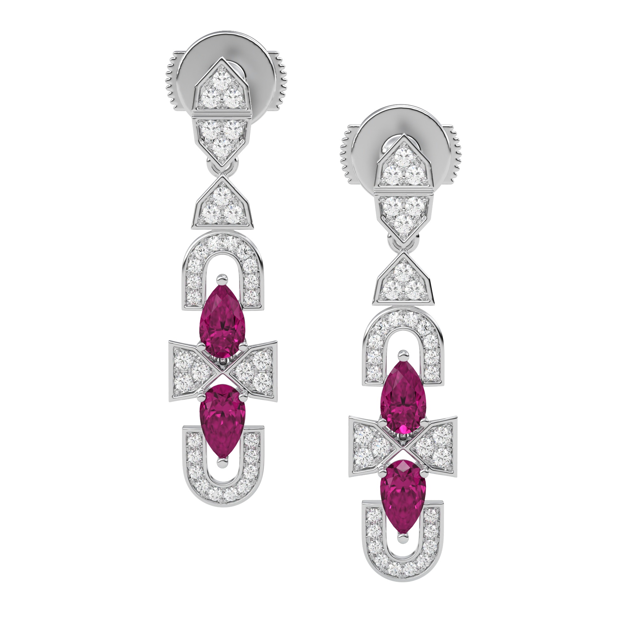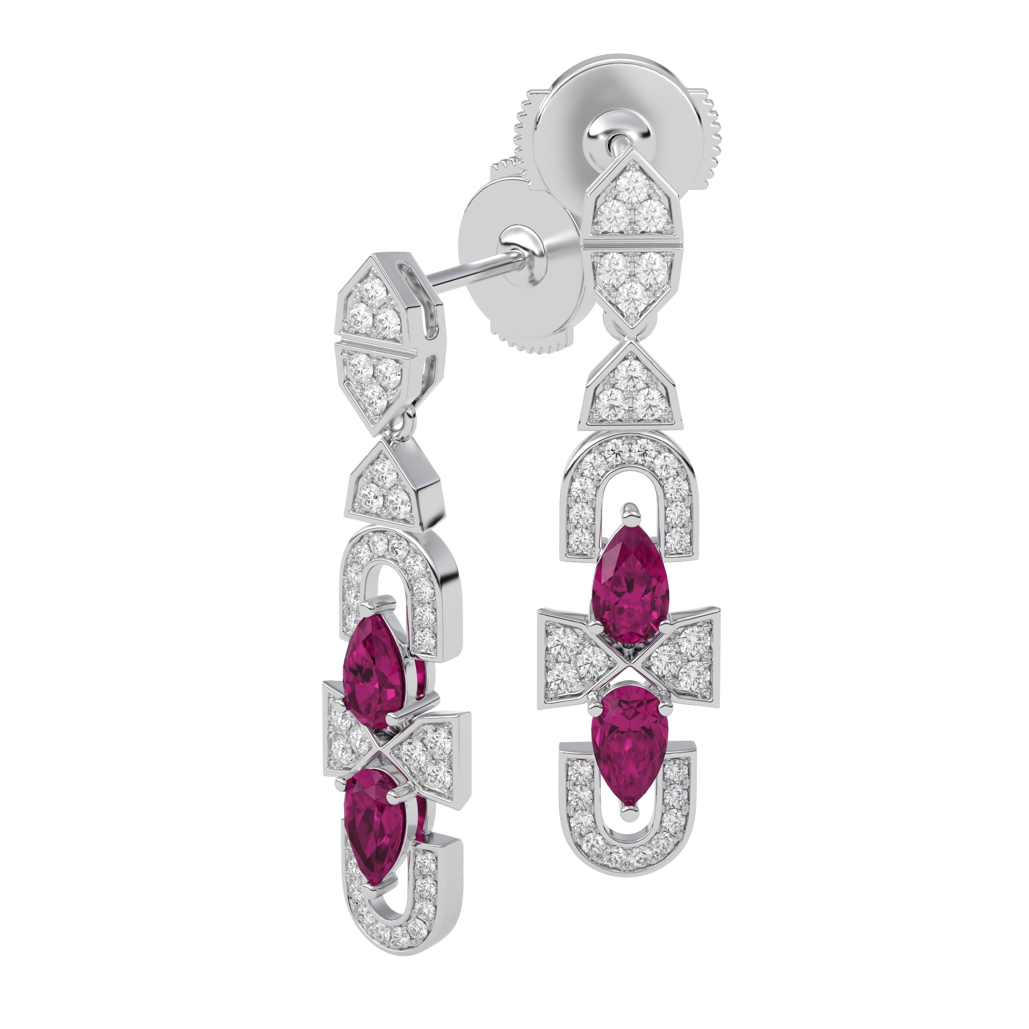 Vàng 18K | - 4 viên Sapphire giọt 3.0*5.0 ly - 30 viên Kim Cương tròn 1.2 ly - 40 viên Kim Cương tròn 0.9 ly |