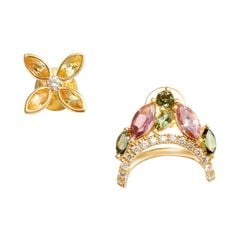 Vàng 18K | - 1 viên Tourmaline tròn 2.5 ly - 2 viên Tourmaline dưa mix màu 3.0*6.0 ly - 3 viên Tourmaline dưa mis màu 2.0*4.0 ly - 4 viên Sapphire dưa vàng 2.0*4.0 ly - 1 viên Kim Cương tròn 1.6 ly - 15 viên Kim Cương tròn 1.2 ly |