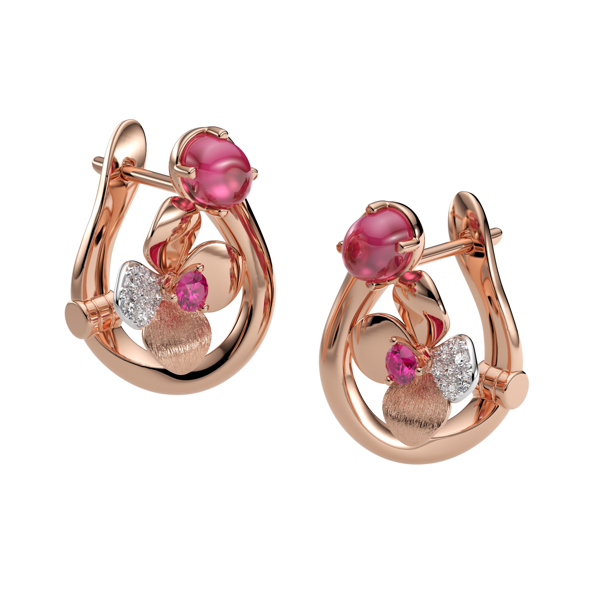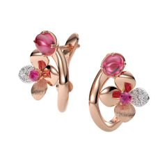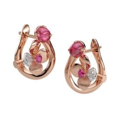 Vàng 18K | - 2 viên Tourmaline oval hồng 4.0*5.0 ly - 2 viên Sapphire tròn hồng 2.0 ly - 16 viên Kim cương tròn 1.0 và 1.2 ly |