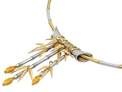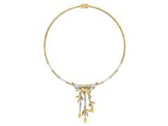Vàng 18K | - 3 viên Sapphire dưa 4.0*8.0 ly - 177 viên Kim cương tròn từ 1.1 đến 1.9 ly |