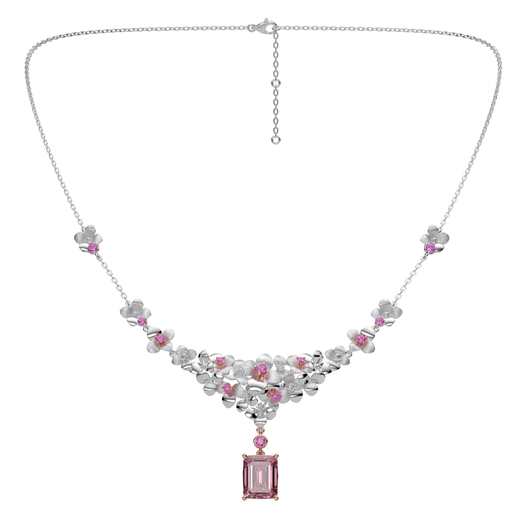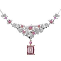 Vàng 18K | - 1 viên Tourmaline chữ nhật 8.0*10 ly - 4 viên Sapphire tròn 2.5 ly - 8 viên Sapphire tròn 2.0 ly - 6 viên Kim Cương tròn 1.6 ly |
