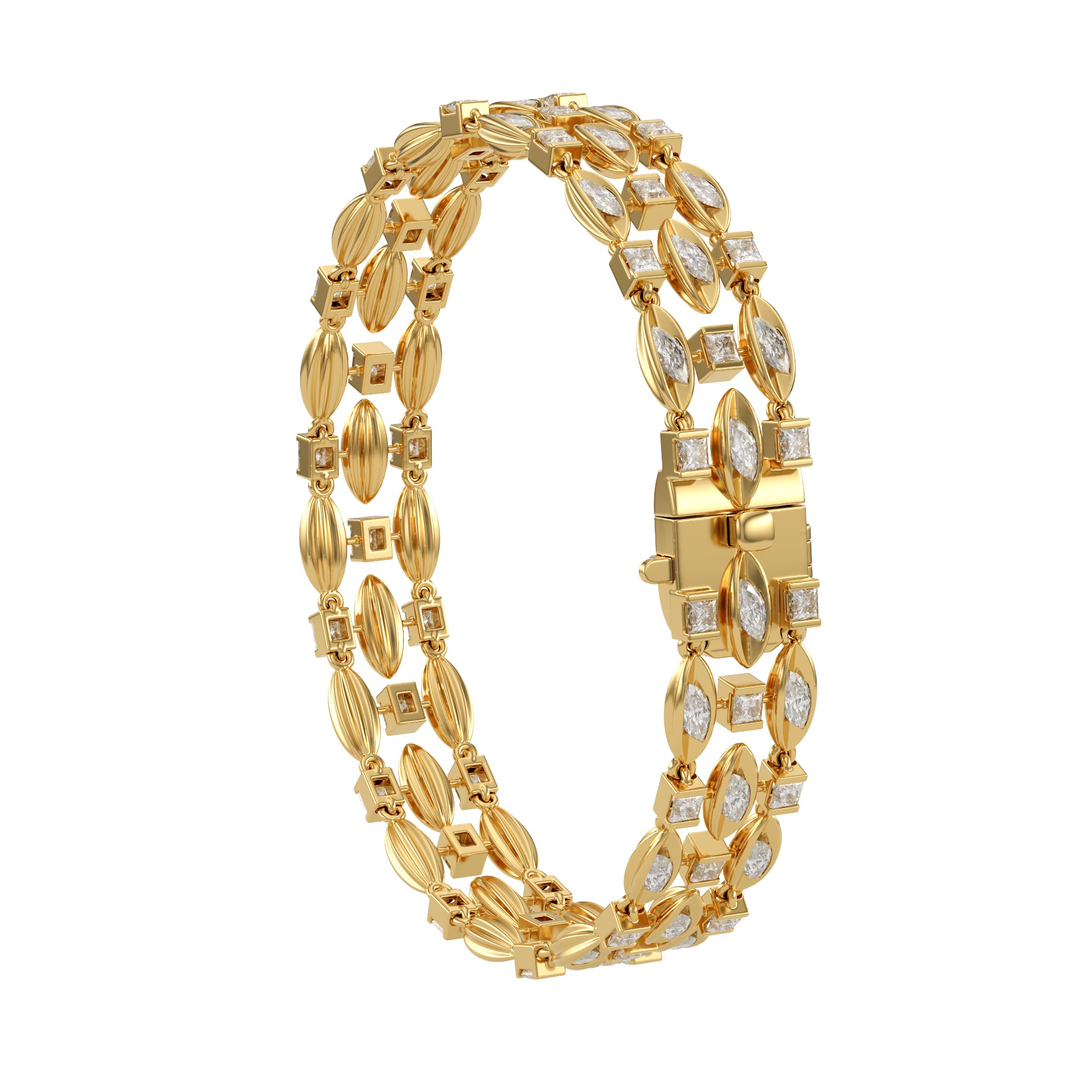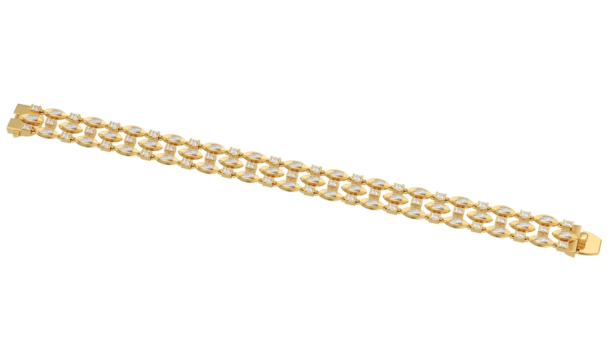 Vàng 18K | - 40 viên Kim Cương dưa 2.0*4.0 ly - 41 viên Kim Cương vuông 2.0 ly |