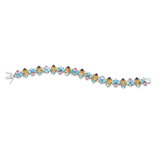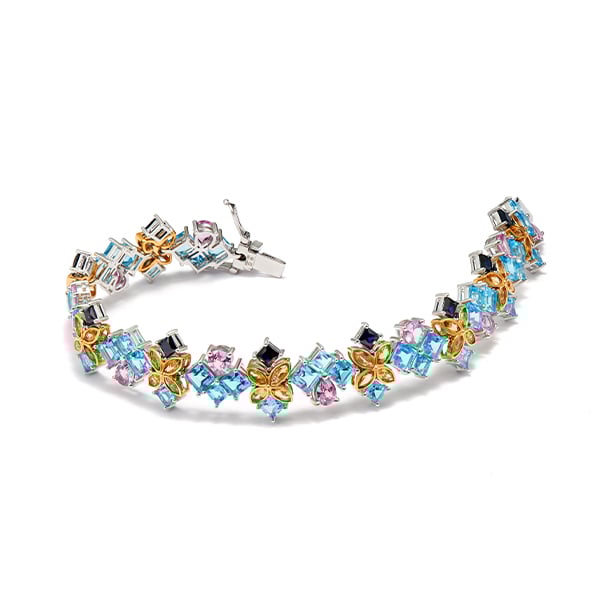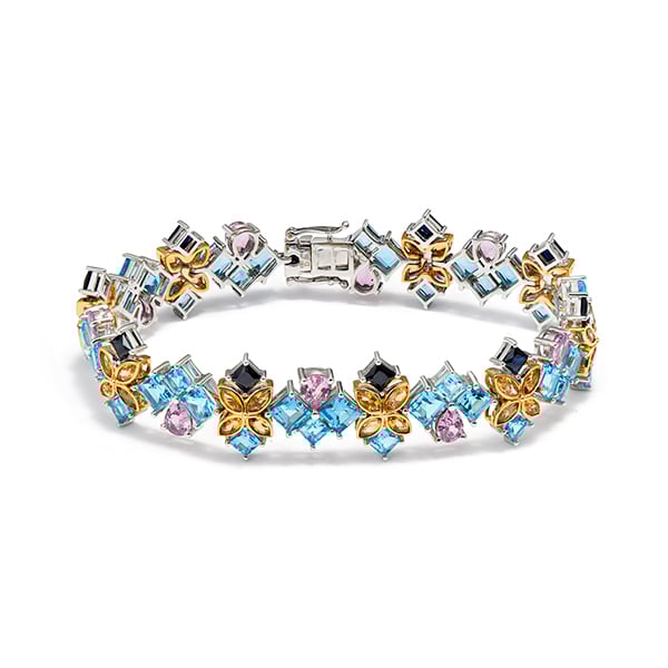 Vàng 18K | - 9 viên Sapphire Vuông Xanh đen 3.0 ly - 10 viên Sapphire Pear Pink 4.0*5.0 ly - 19 viên Topaz Vuông Blue 3.0 ly - 19 viên Topaz Vuông Blue 4.0 ly - 36 viên Citrine Dưa Cam 2.0*4.0 ly |