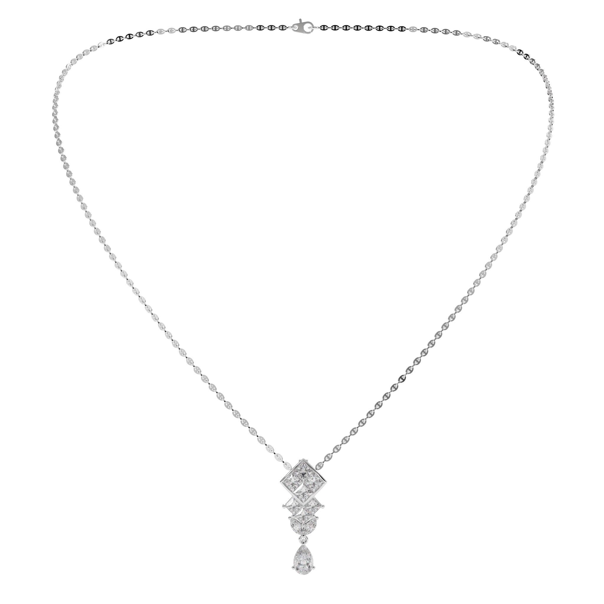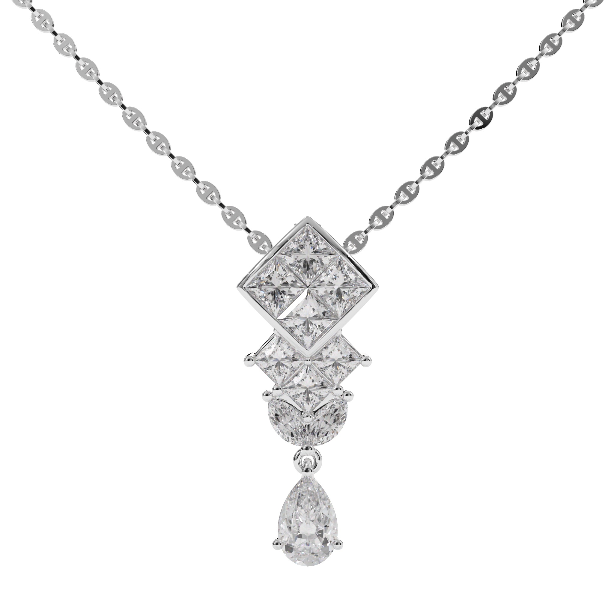 Vàng 18K | - 1 viên Kim Cương giọt F/VS1 4.0*6.0 ly (Kiểm định PNJ+GIA) - 4 viên Kim Cương vuông 3.0 ly - 3 viên Kim Cương vuông 2.5 ly - 2 viên Kim Cương dưa 2.0*4.0 ly |