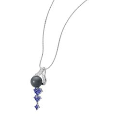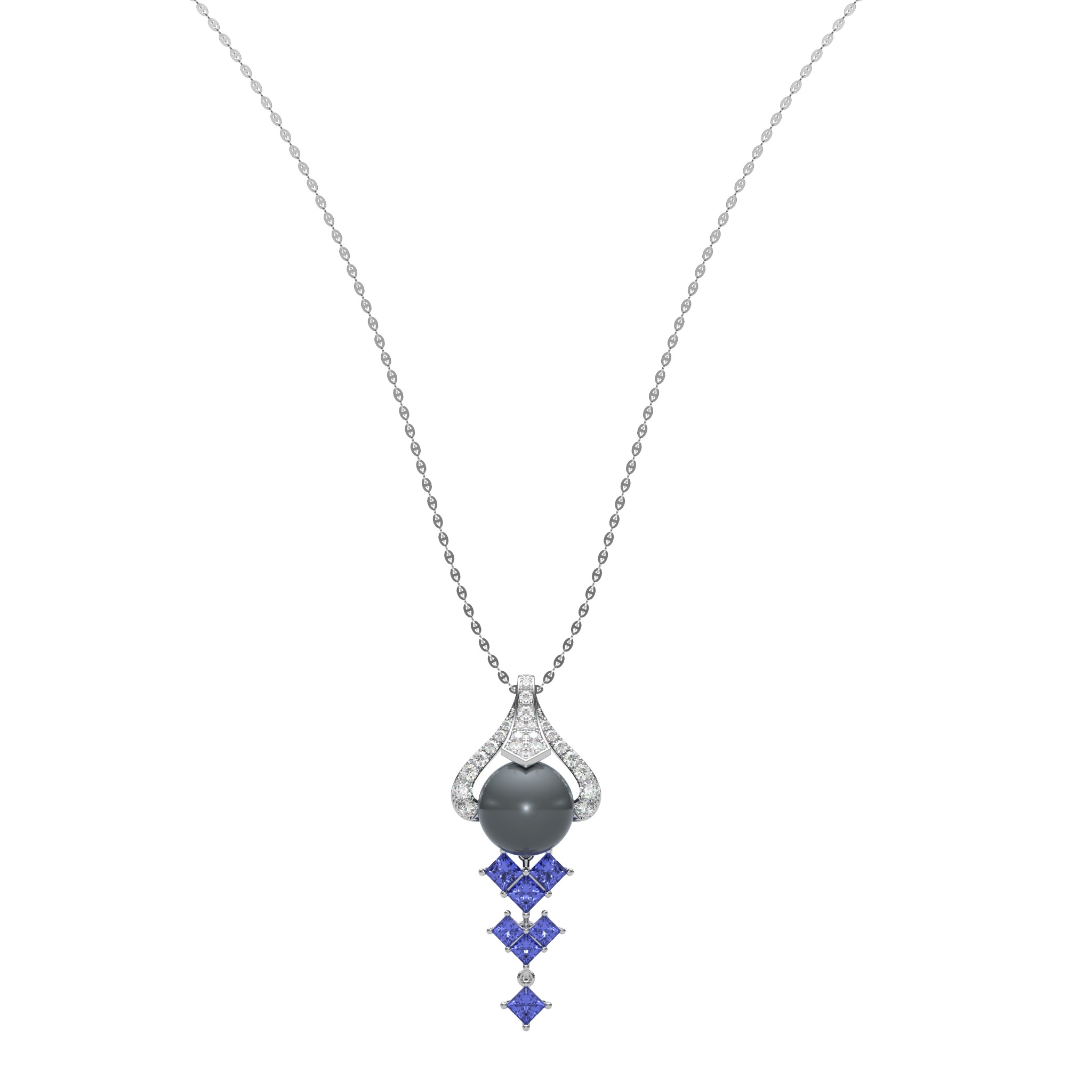Vàng 18K | - 1 viên Ngọc trai Tahiti Ball Dark Gray 10 ly (Kiểm định PNJ) - 4 viên Sapphire vuông Mix Blue 3.0 ly - 3 viên Sapphire vuông Mix Blue 2.5 ly - 4 viên Kim Cương tròn 2.1 ly - 21 viên Kim Cương tròn từ 1.0 đến 1.8 ly |
