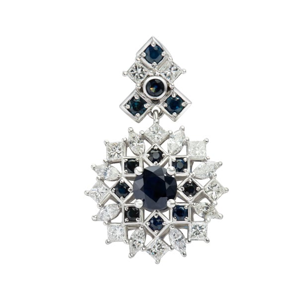 Vàng 18K | - 1 viên Sapphire tròn 6.0 ly - 4 viên Sapphire tròn 2.5 ly - 8 viên Sapphire tròn 2.0 ly - 8 viên Kim Cương dưa 2.0*4.0 ly - 10 viên Kim Cương vuông 2.5 ly |