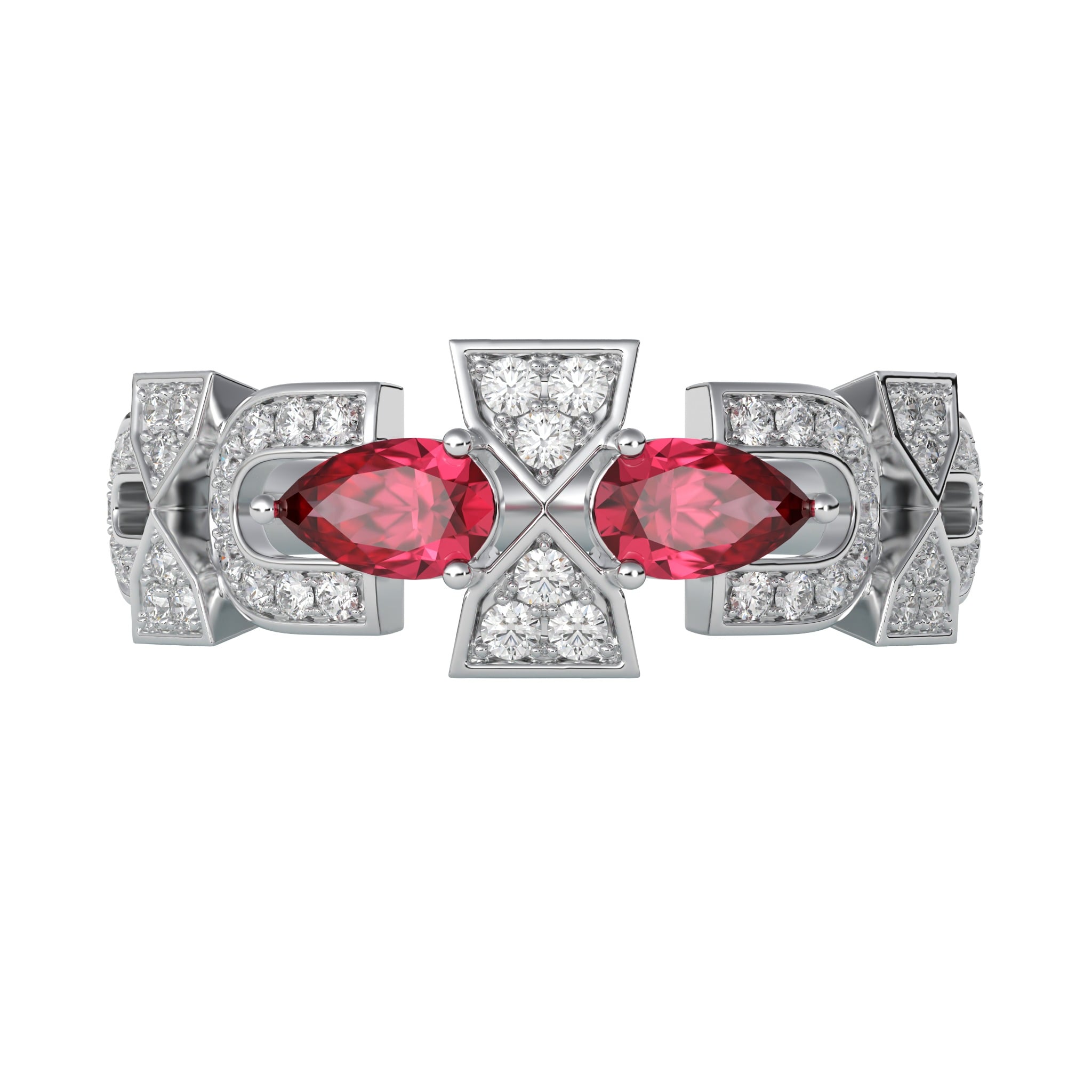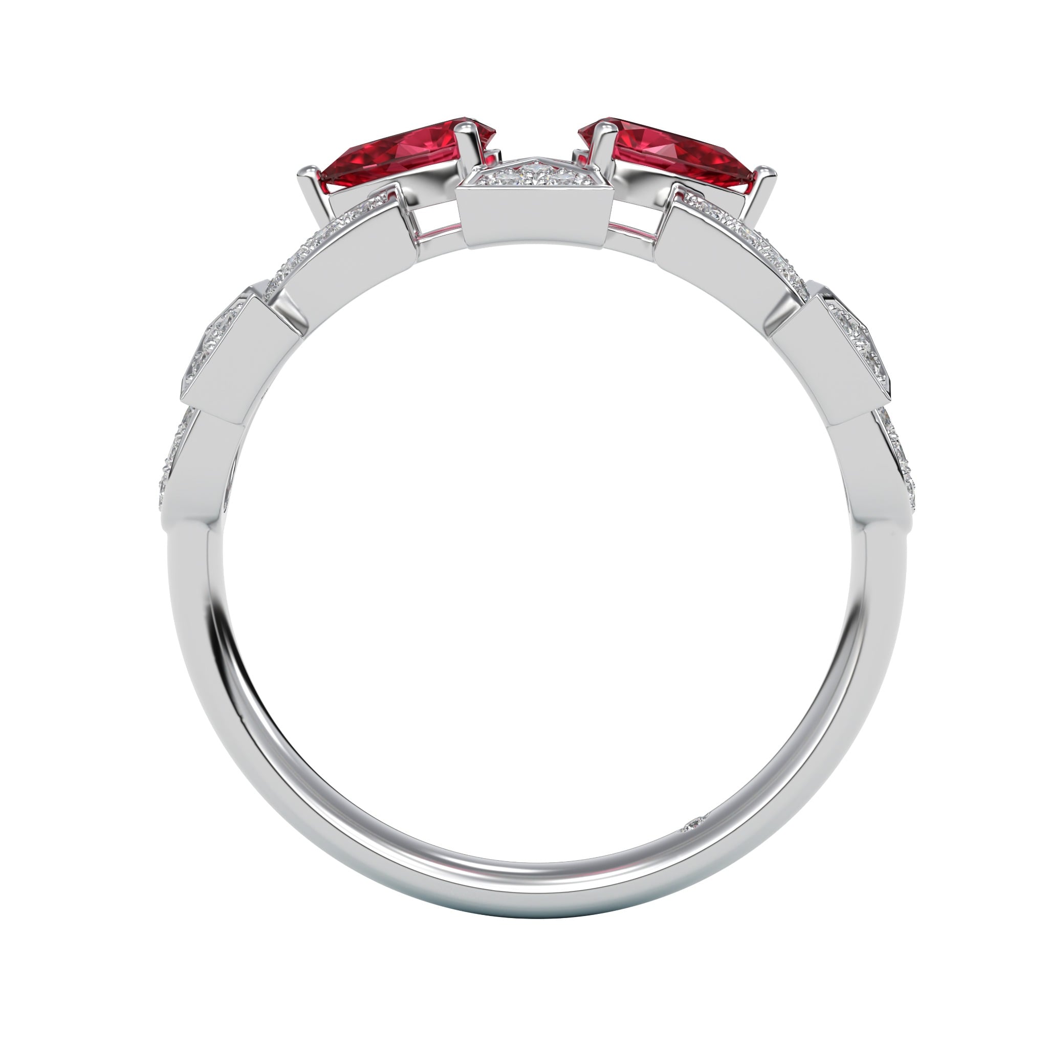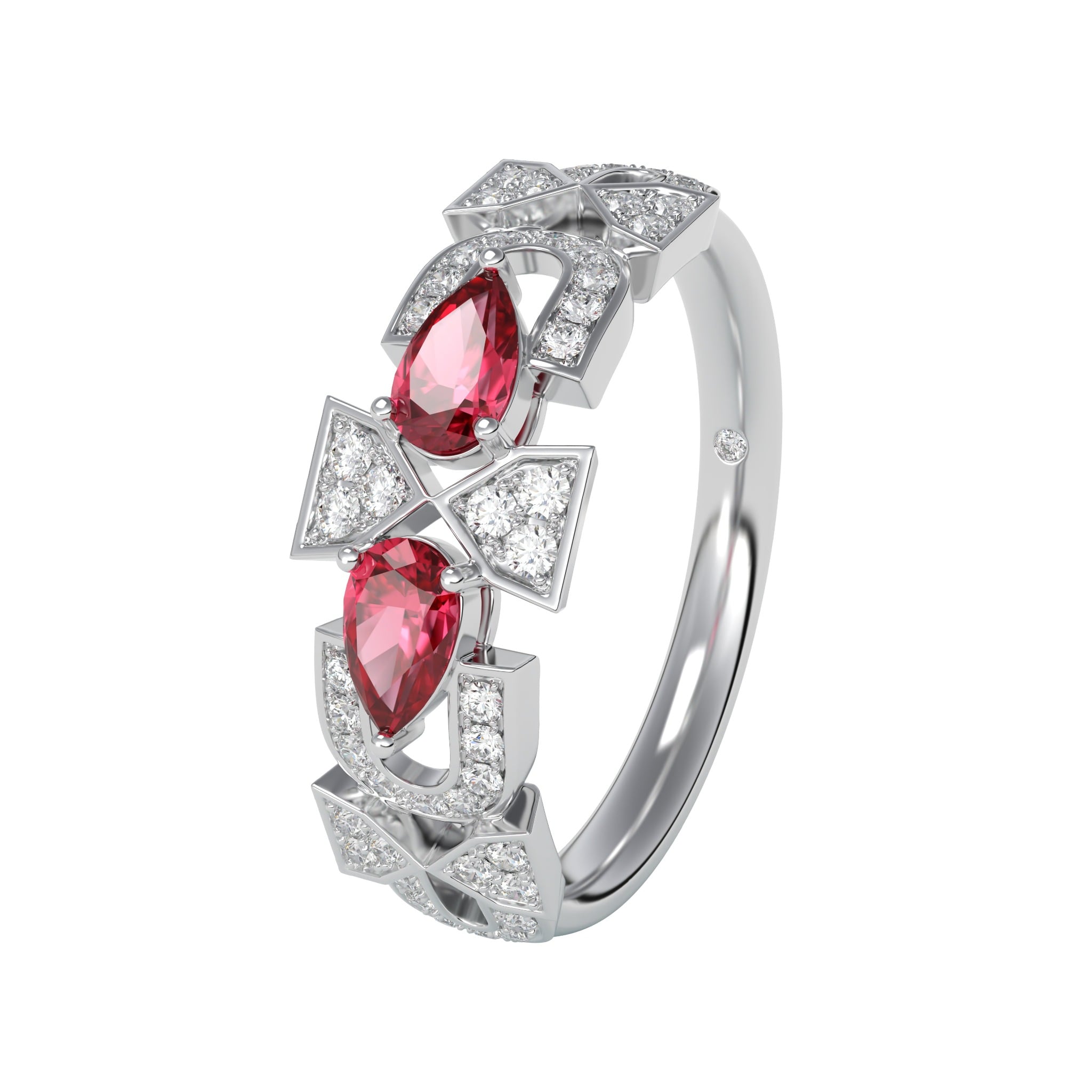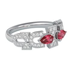 Vàng 18K | - 2 viên Ruby giọt 3.0*5.0 ly - 51 viên Kim Cương tròn từ 0.9 đến 1.2 ly |