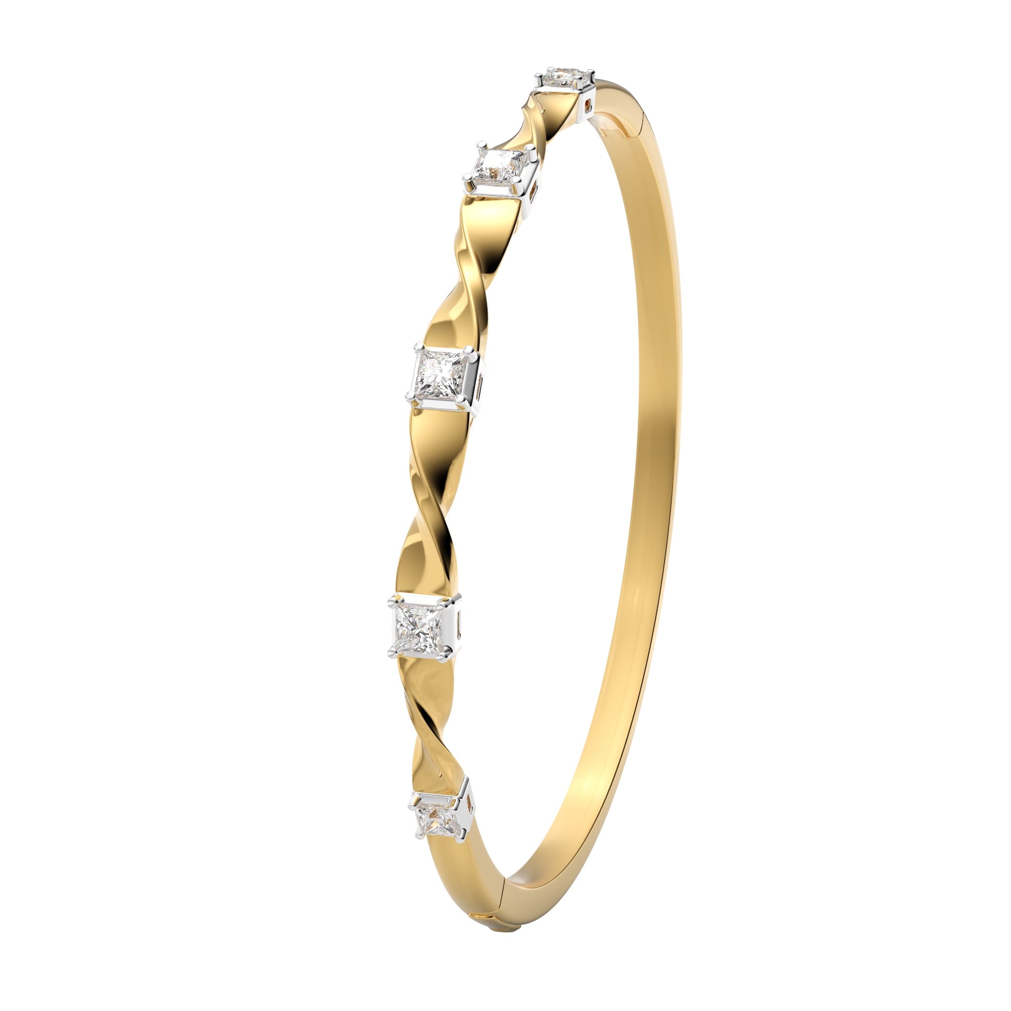 Vàng 18K | - 3 viên Kim cương vuông 3.0 ly - 2 viên Kim cương vuông 2.5 ly |