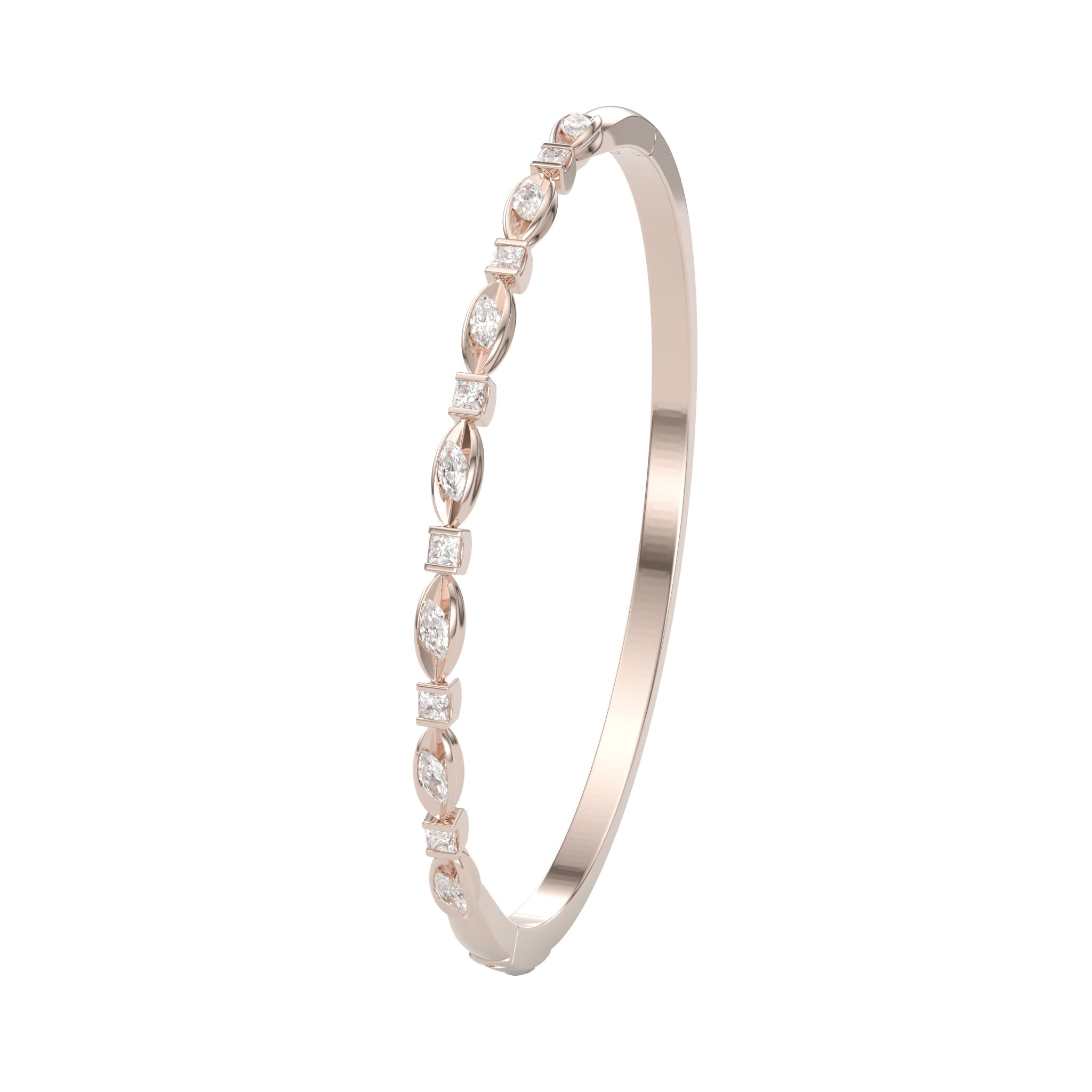 Vàng 18K | - 7 viên Kim cương dưa 2.0*4.0 ly - 6 viên Kim cương vuông 2.0 ly |