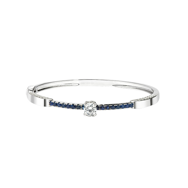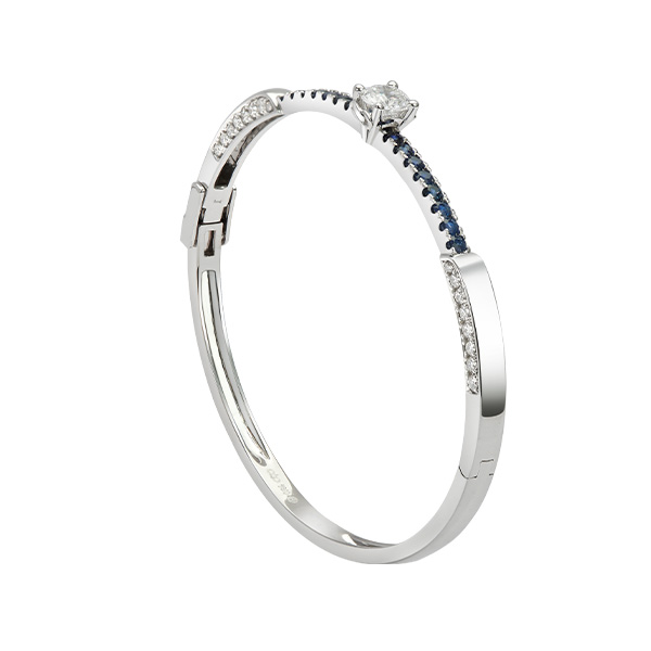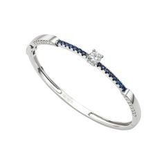 Vàng 18K | - 1 viên Kim Cương Tròn D/VVS1 5.3 ly (Kiểm định PNJ+GIA) - 16 viên Sapphire Tròn Xanh đen 2.0 ly - 28 viên Kim Cương tròn 1.6 ly - 4 viên Kim Cương tròn 1.2 ly |